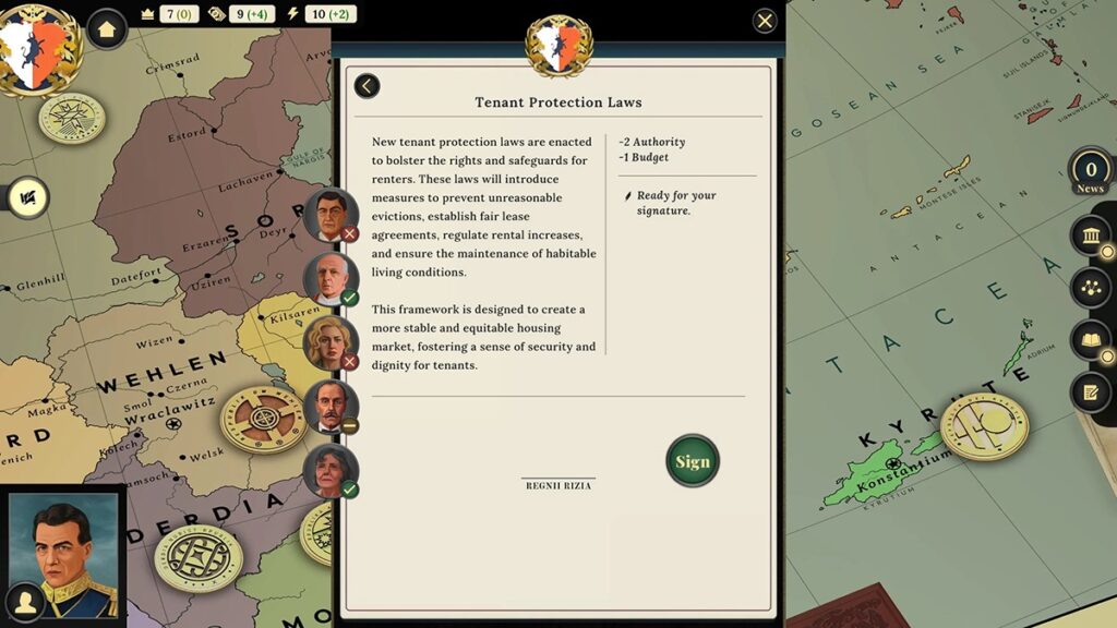 En Suzerain, puedes elegir diferentes roles de liderazgo. Puedes ser comunista, puedes ser capitalista, puedes ser democrático centrista. Puedes ser una mezcla de muchas cosas.